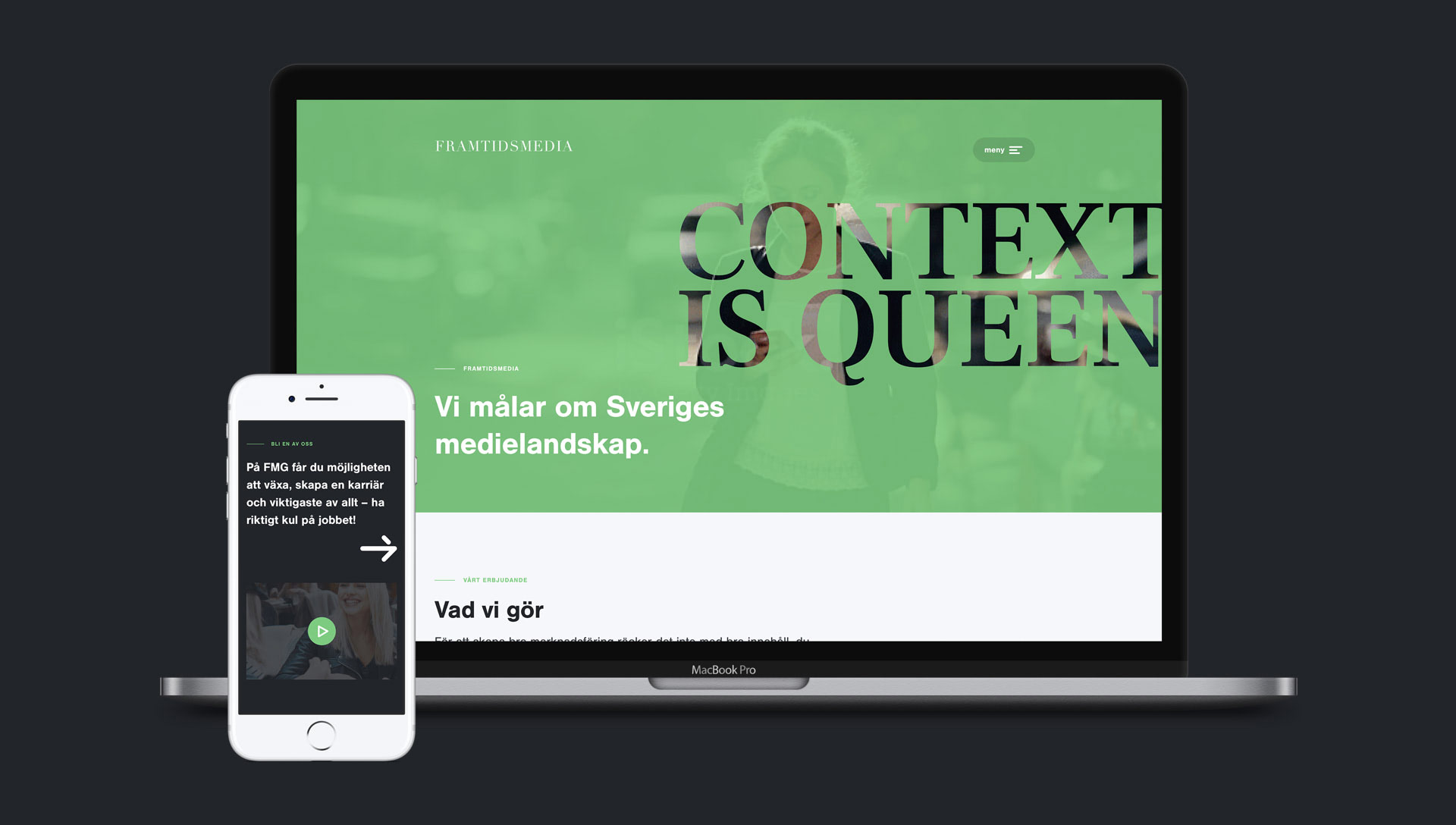 För att skapa bra marknadsföring räcker det inte med bra innehåll, du måste även sätta det i rätt sammanhang. Det tycker vi att Framtidsmedia uttrycker bra genom sitt budskap “Context is Queen”. Men hur man förmedlar och bygger upp relationer för att kommunicera med sin målgrupp är också avgörande. Story media är experter på content marketing och vet hur kraftfull storytelling kan vara och menar att “Every story needs to be told”. De här två budskapen tog vi fasta på och lät det bli våra ledord när vi tog fram koncept och design för de respektive varumärkena. Budskapen var bra och kraftfulla, men den befintliga designen levde inte riktigt upp till det man önskade förmedla - och det ville vi ändra på.