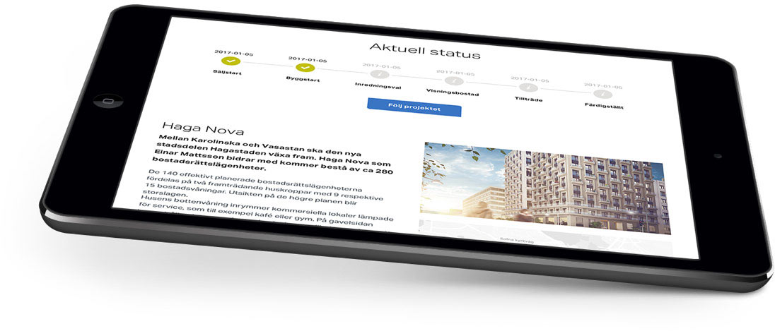 Genom att skapa ett snyggt och lättarbetat ramverk för presentation av Einar Mattssons byggprojekt kan redaktörerna nu skapa snygga och representativa presentationer av projektet. Där kan de berätta om vad projekten syftar till och hur många nya hyresrätter som byggs – eftersom det är ett hett ämne i bostadsmarknaden i Stockholm.